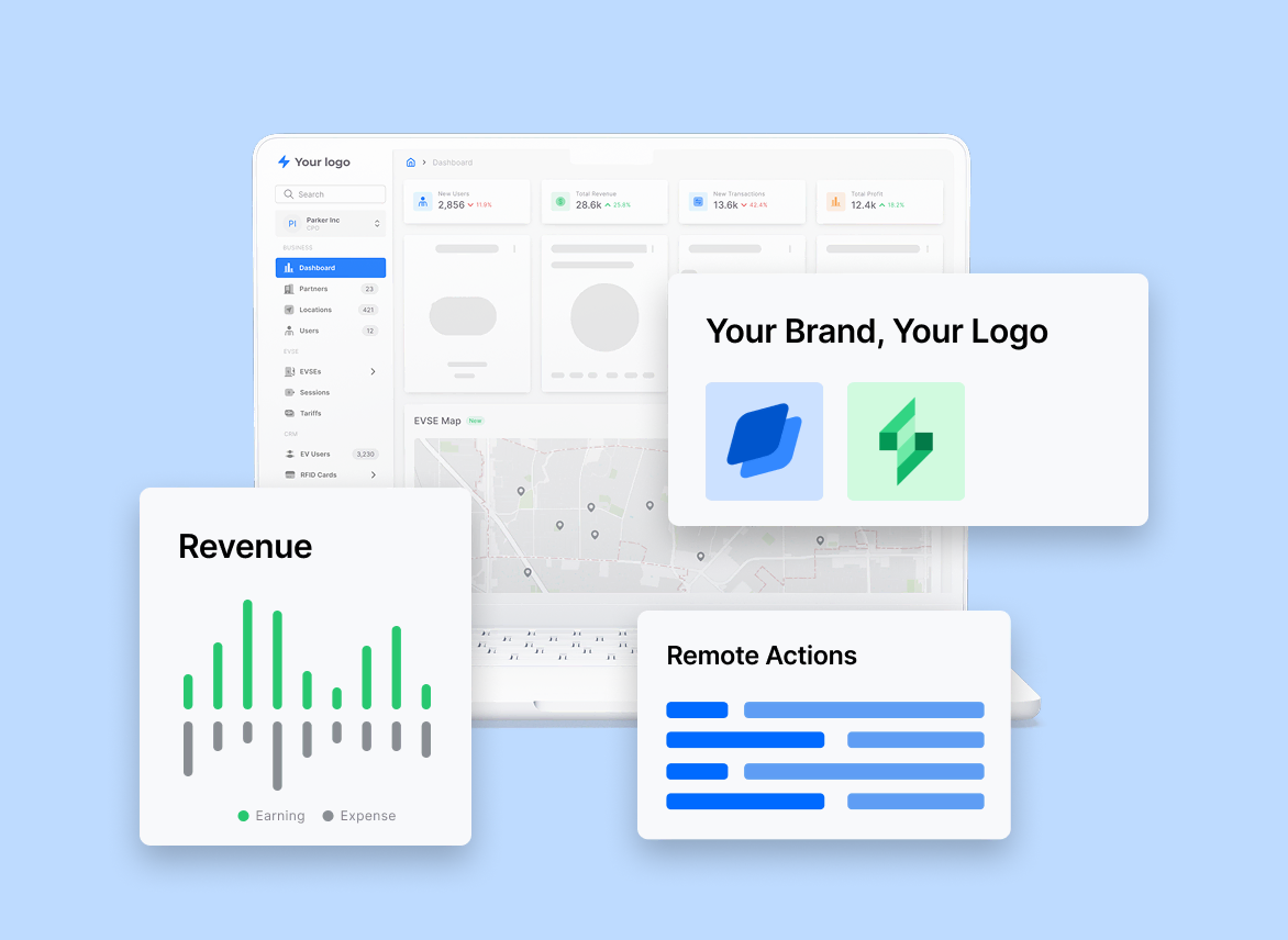 Our platform supports any OCPP-compliant hardware (OCPP 1.6j & 2.0.1). Bring your own chargers or choose from our partners.